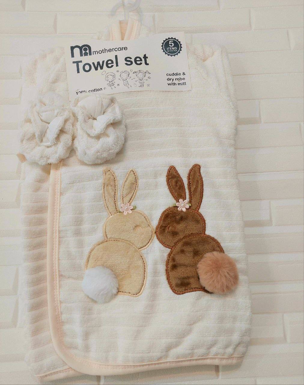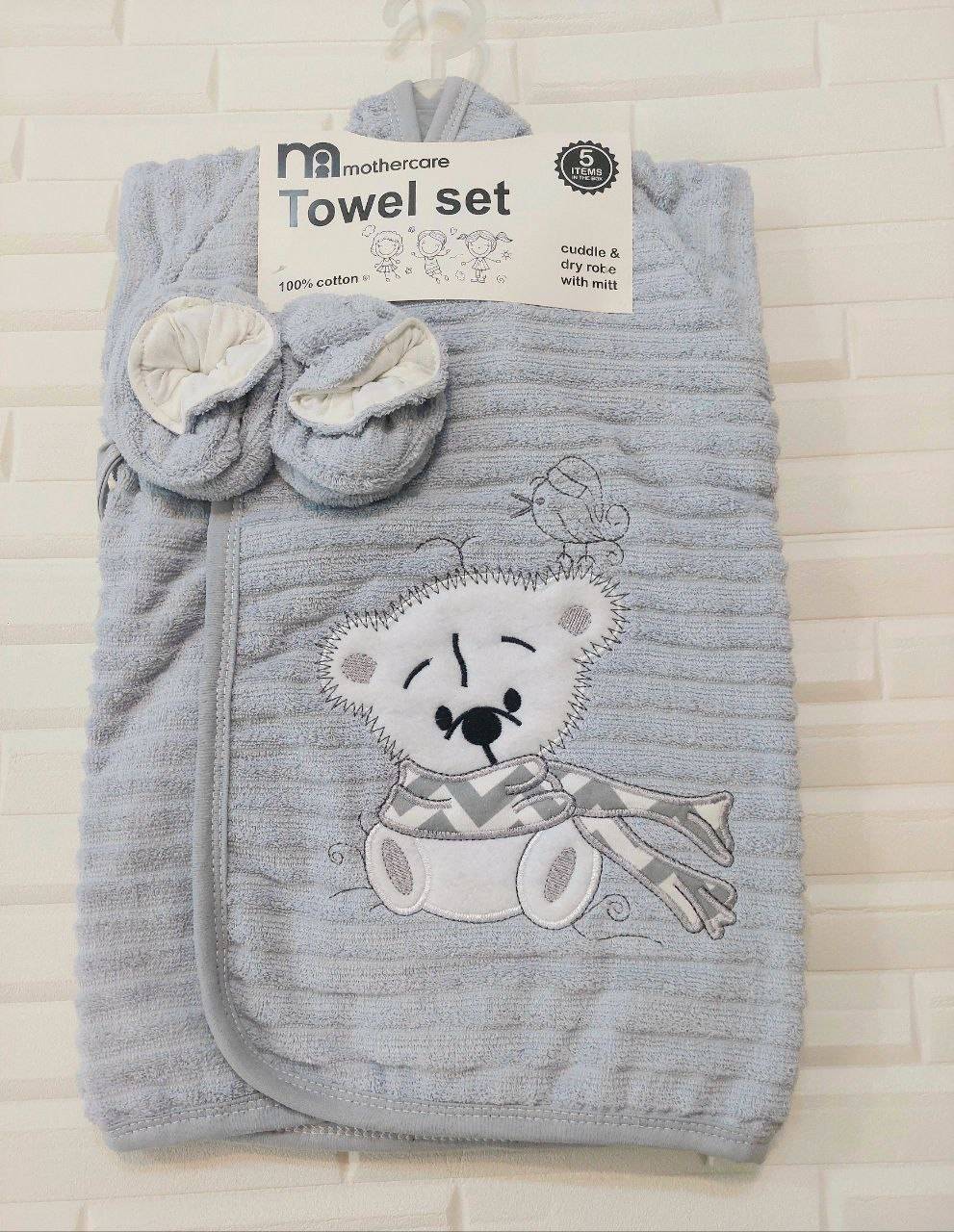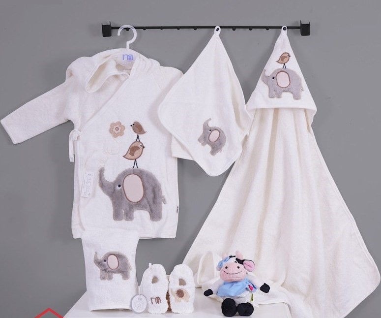 • این سرویس حوله نوزاد 5 تیکه شامل یک عدد حوله تن پوش ، یک عدد حوله دورپیچ ، یک عدد حوله دستی ، یک عدد لیف حوله ایی حمام و یک جفت پاپوش حوله ایی میباشد.
